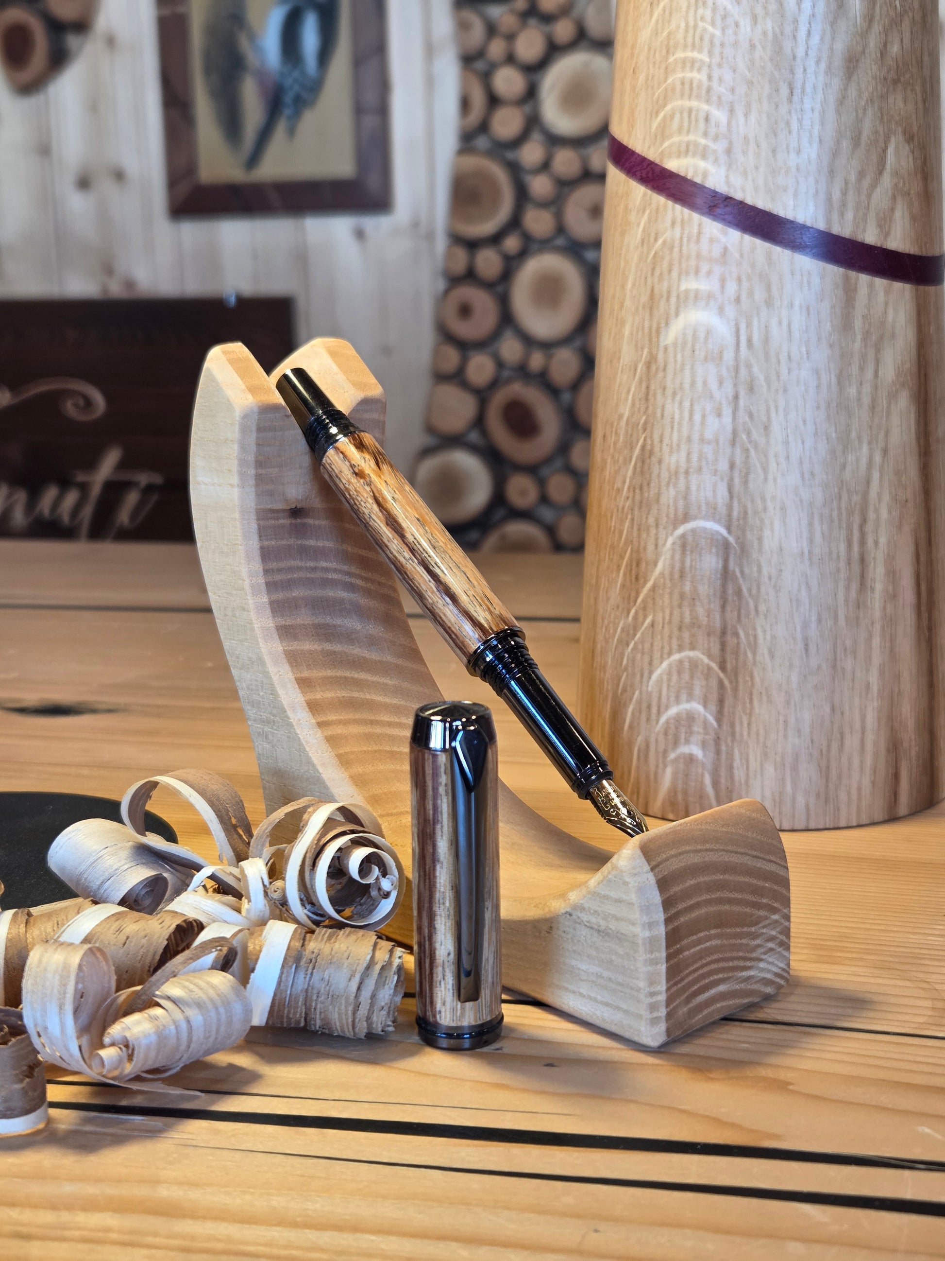 Penna stilografica modello New Gentleman in legno di beli e meccanica gun metal. Cartuccia a pressione.