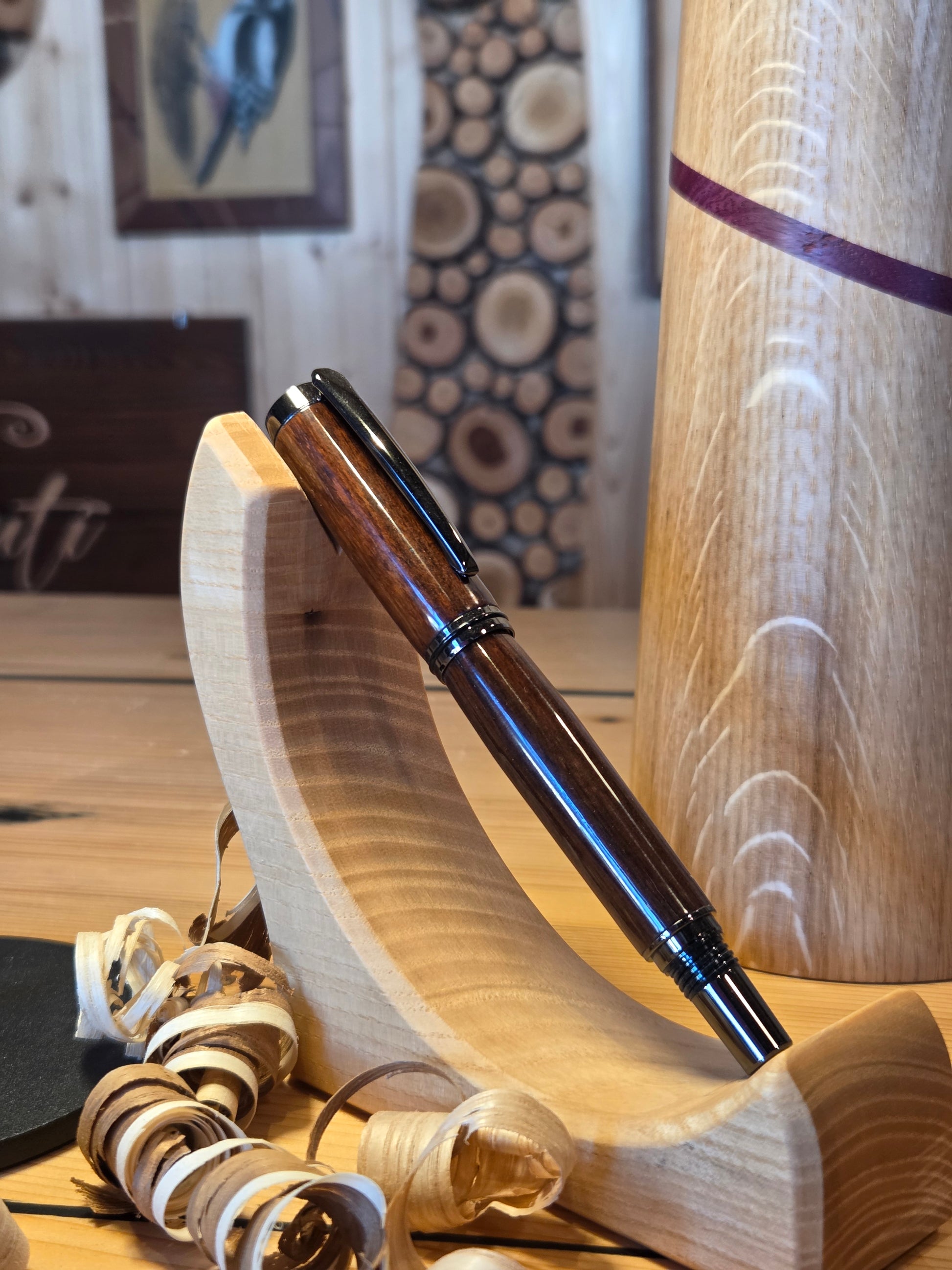 Penna stilografica modello New Gentleman in legno di padouk e meccanica gun metal. Cartuccia a pressione.